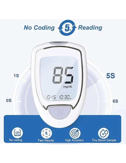 Glucose Monitor Kit, High Accuracy Blood Sugar Testing Kit with 100 Glucometer Strips & 100 Lancets, Larger-Screen Glucose Monitor with Lancing Devices, No Coding, Portable for Home or Travel