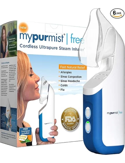 Mypurmist Free Ultrapure Cordless Steam Inhaler – Handheld Personal & Battery-Powered Steamer, Vaporizer & Humidifier for Sinus Relief, Nasal Congestion, Cold & Cough, Vocal Care