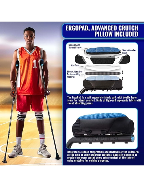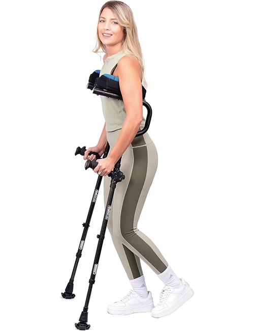 The revolutionary double-function shock absorber system integrated into the crutch tips and frames works dynamically to dampen the impact of each step. This mechanism significantly reduces the jarring forces transmitted up to the wrists, elbows, and shoulders, minimizing secondary joint strain and allowing for a smoother, less painful gait, especially over varied terrain.